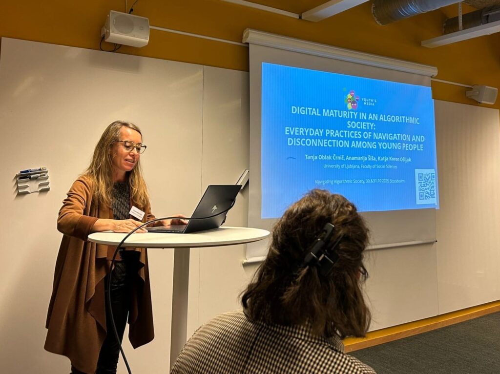 Med 30. in 31. oktobrom je na Univerzi Södertörn na Švedskem potekala mednarodna konferenca z naslovom Navigating the Algoritmic Society, ki se je udeležila tudi Tanja Oblak Črnič in v sodelovanju z Anamarijo Šiša in Katjo Koren Ošljak predstavila referat z naslovom Digital Maturity in an Algorithmic Society: Everyday Practices of Navigation and Disconnection among Young People.